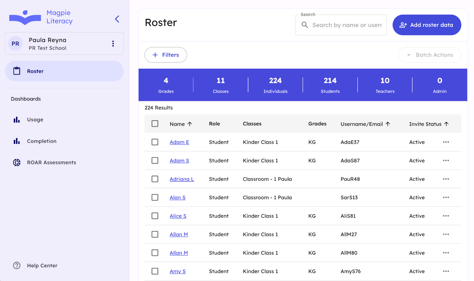 - Percentage of students in the classroom who learned in Magpie for at least 45 minutes during this calendar week will read “0%” and will be updated with accurate data in the coming weeks
