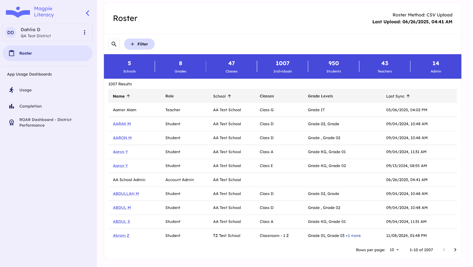 *Usage data updates nightly.* If there are any issues, please report it to our Magpie Literacy Help Desk so it can be addressed.