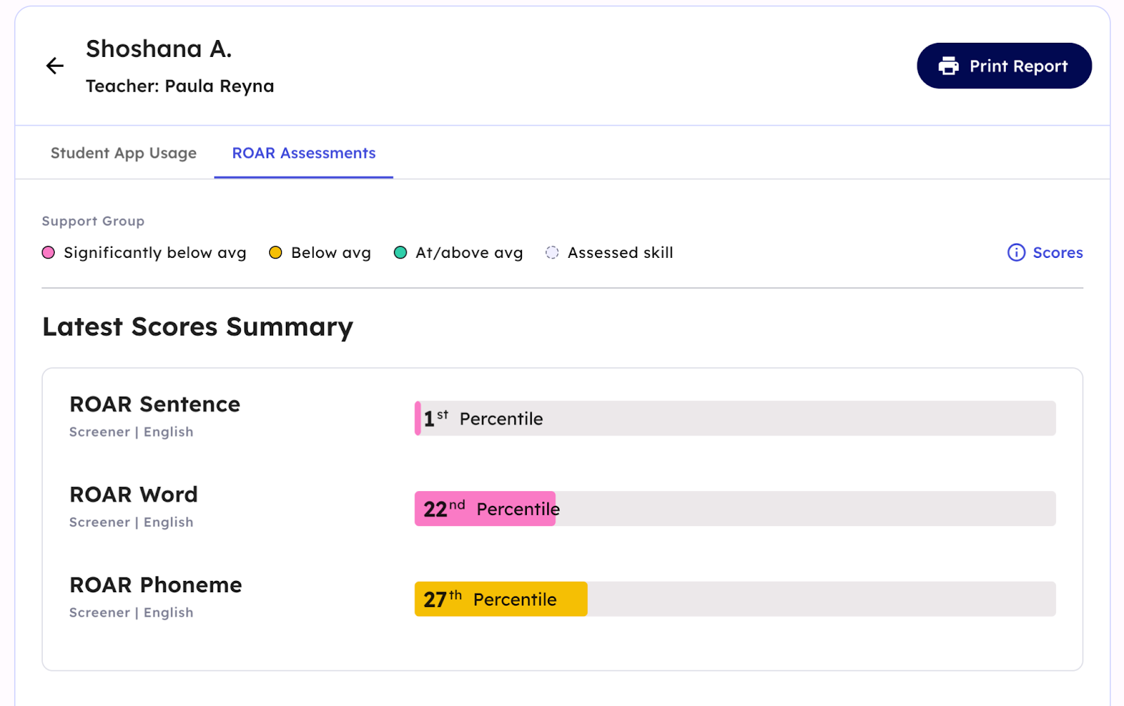 ROAR Student Report